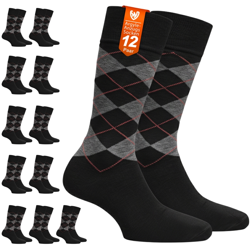 12-er-Paar Argyle-Dresssocken – weiche Baumwolle, Rautenmuster-Design für Büro- und Business-Bekleidung GW278 12er Pack