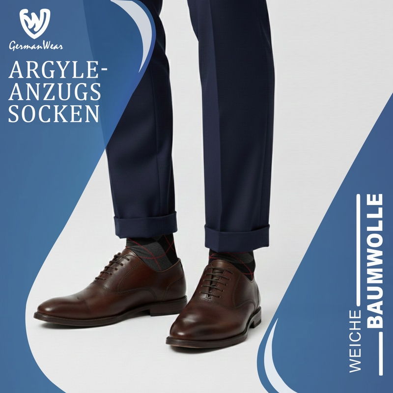 Herren Argyle Dress Socks sind ein stilvolles Must-have für moderne Männer, die Wert auf Eleganz und Komfort legen. Dieses 3er-Pack Argyle Dress Socks für Herren überzeugt mit einem zeitlosen Diamantmuster in klassischem Blau/Schwarz und eignet sich ideal als Business- und formelle Herrensocken für Büro, Arbeit und besondere Anlässe. Als klassische Herrensocken ergänzen sie Anzüge und elegante Schuhe perfekt und verleihen jedem Outfit eine professionelle, gepflegte Ausstrahlung. Gefertigt aus 80 % Baumwolle, 18 % Polyester und 2 % Elasthan, unterstützen diese atmungsaktiven Baumwoll-Dresssocken die natürliche Fußphysiologie durch optimale Luftzirkulation, Feuchtigkeitsregulierung und flexible Passform. Die weiche Baumwolle reduziert Reibung und Druckstellen, während Elasthan für sicheren Halt und ganztägigen Tragekomfort sorgt. Diese bequemen Herrensocken sind für alle Jahreszeiten geeignet und ideal für lange Arbeitstage. Argyle Dress Socks jetzt online kaufen und Ihre Business-Garderobe aufwerten.