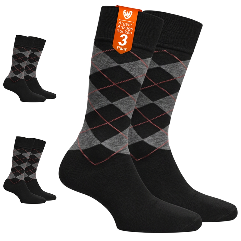 Argyle-Dresssocken 3er Pack – weiche Baumwolle, Rautenmuster-Design für Büro- und Business-Bekleidung GW278 3er Pack