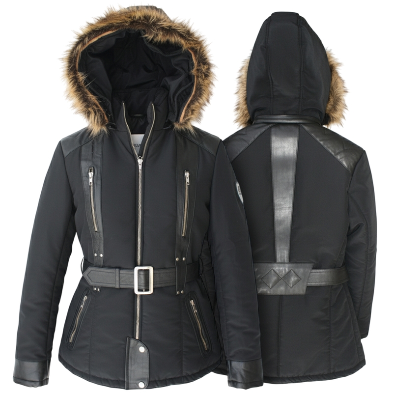 Beschreibung und technische detials von Damen Jacke aus Textilien und Lammnappa Schwarz