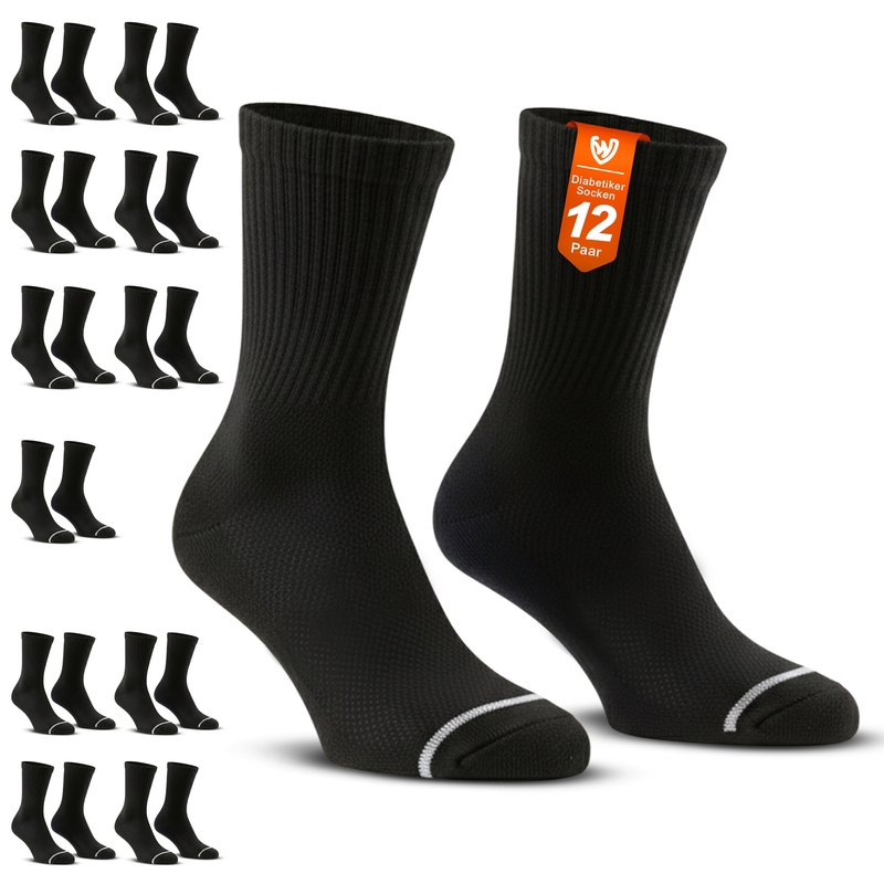Unterstützen Sie die Gesundheit Ihrer Füße mit unserem 12er-Pack Diabetikersocken, entwickelt für maximalen Komfort und Schutz. Hergestellt aus 80% Baumwolle, 18% Polyester und 2% Elasthan, sind diese unisex Socken weich, atmungsaktiv und gepolstert, um Druck auf empfindliche Füße zu reduzieren. Der nicht einschnürende Bund fördert die Durchblutung und hilft, das Risiko von Nervenschäden, schlechter Durchblutung und Fußgeschwüren zu minimieren. Ideal für den täglichen Gebrauch bieten diese Socken ganztägigen Komfort, während sie Ihre Füße trocken und gesund halten. Perfekt als Socken für Diabetiker, sorgt unser gepolstertes und atmungsaktives Design für eine sanfte Passform ohne Einschnürung. Für alle Jahreszeiten geeignet, bieten diese baumwollreichen Socken für empfindliche Füße weiche Unterstützung und langlebigen Komfort für den Alltag. Jetzt Diabetikersocken online kaufen mit kostenlosem Versand und genießen Sie zuverlässigen Komfort, Schutz und Pflege für Ihre Füße—Jetzt online bestellen und den Unterschied erleben!