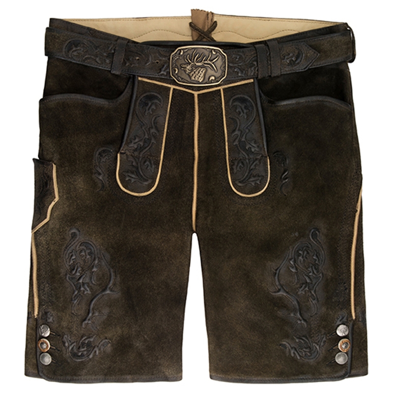 Lederhose Diablo kurzhose Antik mit Gürtel aus 100% Ziegenvelour in der Farbe Braun/Espresso