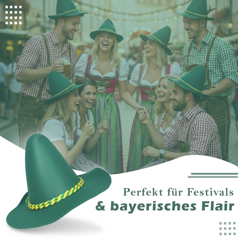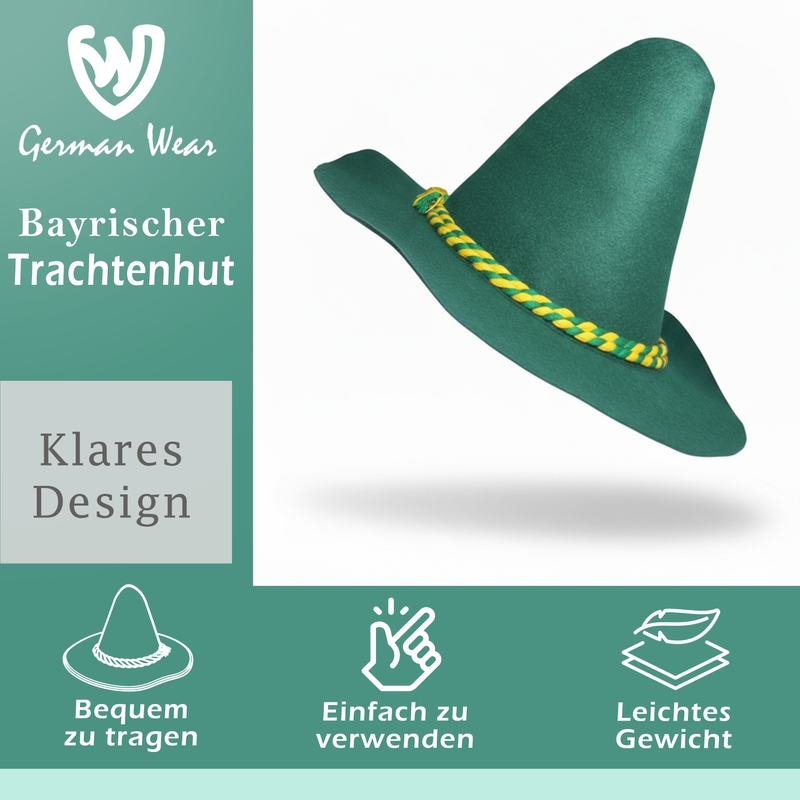 A Bavarian Trachten hat designed and produced by German Wear matching with our Lederhosen available in Green color.