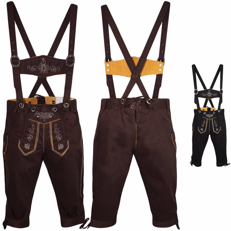 Bavarian traditional cotton knee breeches with denim suspenders in color black and dark brown