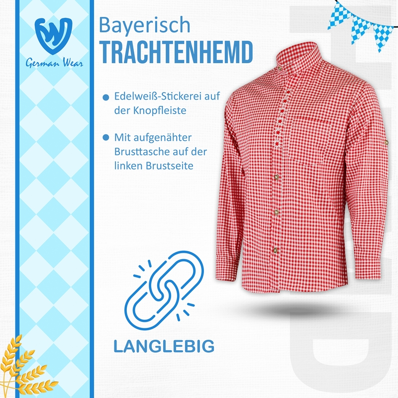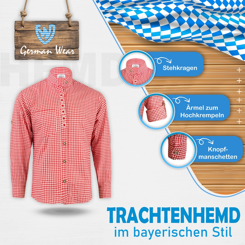 Traditional Bavarian Shirt With Edelweiss Embroidery Made Of Cotton, Long Sleeve