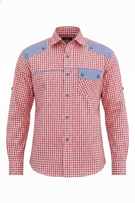 A Checkered traditional Bavarian Shirt available in red colour. Its a Long sleeve shirt.
