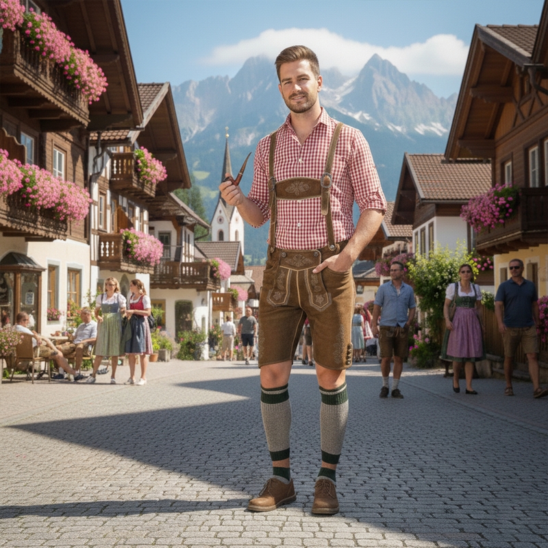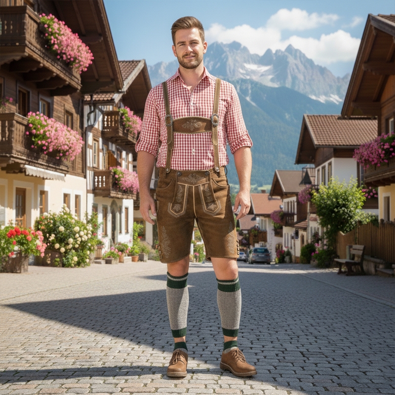 Experience the charm of Traditional Bavarian Loferl socks – a classic 2-piece gray and green set designed with an elegant cable knit pattern. Crafted from 80% merino wool and 20% polyamide, these socks combine softness, breathability, and durability for maximum comfort. The short sock and calf section are designed to fit perfectly with lederhosen or any Bavarian costume, making them the ideal choice for Oktoberfest Loferl socks or festive traditional outfits. The stylish turned-up cuff and patterned design add an authentic touch to your look. With a reinforced heel and toe, these durable Oktoberfest socks are built for long-lasting wear, ensuring both comfort and strength. The calf section, approximately 40 cm long, offers excellent coverage while maintaining breathability. Whether you’re looking for elegant Bavarian stockings, comfortable everyday wear, or the best Loferl socks for Oktoberfest, this set is a must-have accessory for men who value both tradition and quality. Shop now and order online to complete your authentic Bavarian outfit.