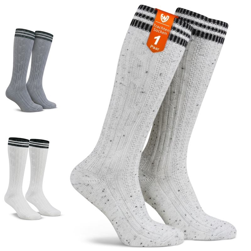 Step into authentic tradition with our Long Traditional Socks, designed as premium Oktoberfest Socks and Men’s Bavarian Socks for Lederhosen. Made from a high-quality blend of 80% wool and 20% polyamide, these Cable Knit Wool Socks feature a natural mottled color that pairs perfectly with all traditional trousers. The elegant cable knit pattern and slightly shimmering sheen make them a stylish choice, while the 50cm long shaft ensures a true over-the-knee fit. Ideal for both short and knee-length leather pants, these socks provide a timeless Oktoberfest look with unmatched comfort. Crafted for elegance and durability, these Long Oktoberfest Stockings for Men are soft on the skin, extremely comfortable to wear, and perfect for turning up with your outfit. Whether you’re dressing for Oktoberfest, traditional festivals, or simply want Elegant Traditional Costume Accessories, these socks are the ideal choice. Experience authentic German wear with socks that combine classic design, warmth, and comfort. Order Traditional Knee-High Socks online today and complete your Oktoberfest outfit with style.