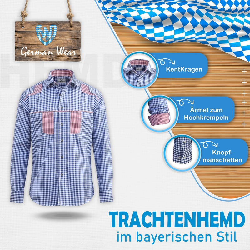 Bavarian shirt for men with blue and white check