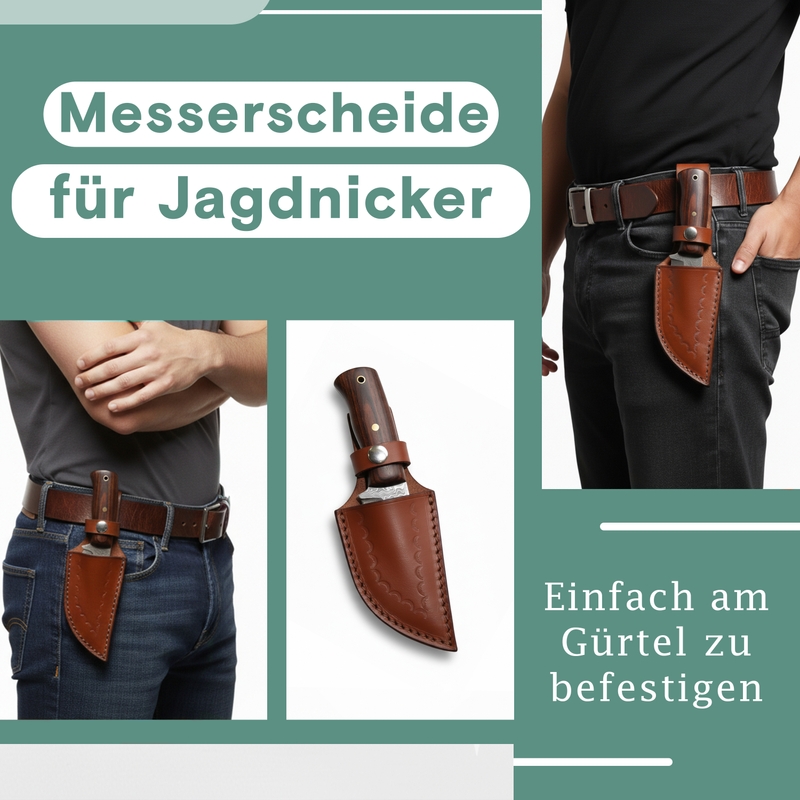 Upgrade your outdoor gear with this genuine leather knife sheath, crafted for durability and style. This brown leather sheath features a belt loop for easy carrying and a secure snap fastener to keep your hunting knife safely in place. Its classic design and tapered end ensure a perfect fit for blades up to 9.5 cm, making it ideal for hunting trips, camping, or everyday outdoor use. Made from extremely robust, tear-resistant leather, this traditional knife sheath combines functionality with elegance. The closure strap secures your knife handle, while the tab-shaped design allows effortless attachment to your belt. Compact yet durable, it’s a small knife sheath built for adventure and reliability. Get now and experience the perfect blend of craftsmanship and practicality.
