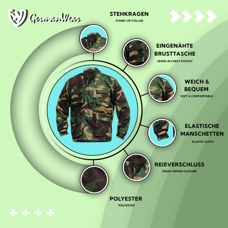 Discover the ultimate in warmth and style outdoors with our military-inspired hunting jacket. Designed for the modern hunter, this jacket features a stand-up collar, a sewn-on chest pocket, and elastic cuffs for a snug fit. Made from 100% polyester, it offers exceptional insulation and durability against the elements. The camouflage fabric and deer embroidery add a touch of rugged sophistication to your hunting gear. This winter jacket is soft and comfortable, equipped with multiple pockets for all your essential items. The front zipper ensures easy on and off, while the long sleeves and large pockets enhance practicality. Perfect for cold weather, this embroidered hunting apparel combines functionality with a striking deer design. Elevate your outdoor clothing collection with this indispensable men's jacket.