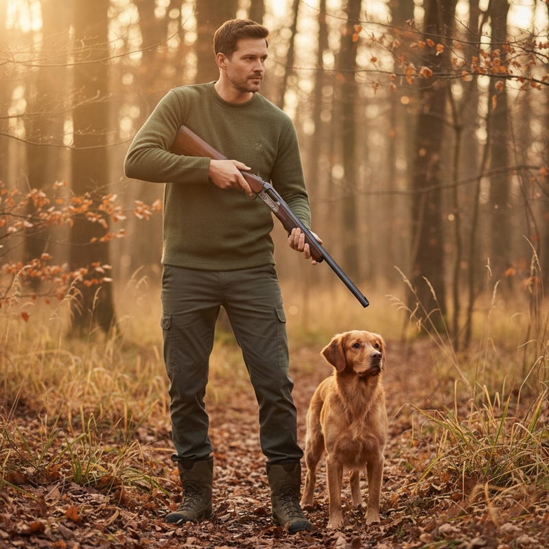 Stay warm and stylish outdoors with our premium olive-green hunting sweater, crafted from a soft blend of 50% virgin wool and 50% polyacrylic. This high-quality sweater offers the perfect balance of warmth, comfort, and breathability – ideal for cold weather and traditional hunting situations. With its classic olive-green tone and subtle chest embroidery, it is an elegant piece of traditional hunting apparel for men who value both function and heritage. Designed by OS Trachten, this men’s hunting sweater combines timeless aesthetics with long-lasting performance. Whether out hunting or enjoying leisure time, this soft wool sweater provides enduring comfort. Discover the best in traditional wool clothing – order your olive-green hunting sweater online now and experience unmatched warmth and quality.