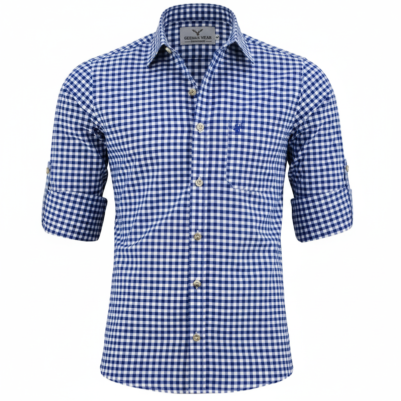 Bavarian traditional shirt long sleeve plaid with stag embroidery