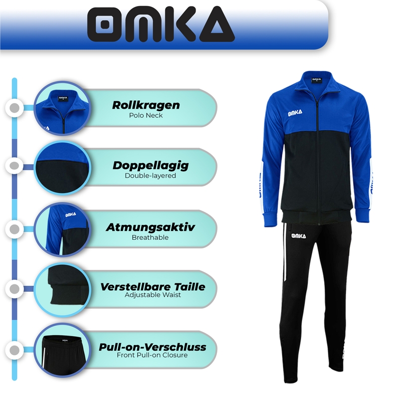 - OMKA Track Suits in beautiful contrast colors.