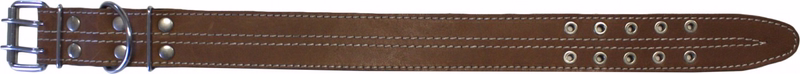 Give your dog the comfort, durability, and style it deserves with this brown genuine cowhide leather dog collar. Handmade with care, this adjustable leather dog collar (47–58 cm) is designed for strength and elegance. Featuring a classic buckle closure and brown leather with white contour stitching, it combines timeless style with everyday practicality. The collar is extremely robust and tear-resistant, making it perfect for active dogs, whether at play, on walks, or during training. With a maximum width of 5 cm and a solid 5 mm thickness, it provides both comfort and security for medium to large breeds.