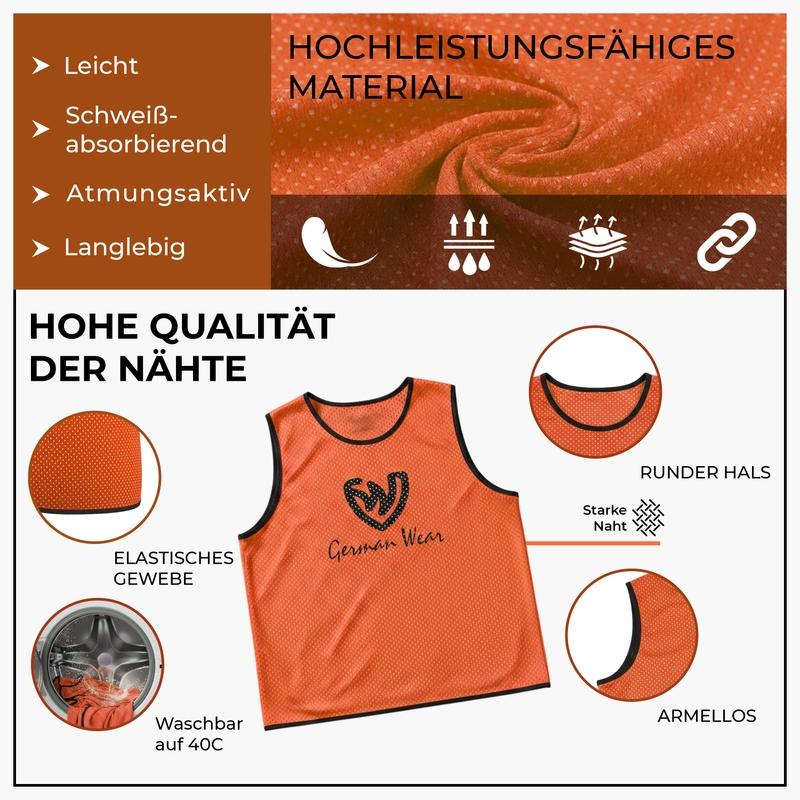 - German Wear Training bibs are made of ultra-light mesh fabric to enhance player’s performance during training.
