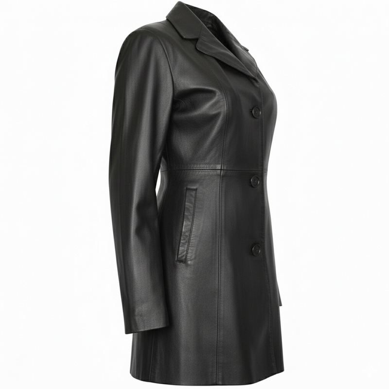 Experience the timeless elegance with a women's premium fashion leather coat. Crafted from premium Nappa leather, the sheepskin jacket offers unparalleled luxury& comfort. Its smart design features button front &chest pockets, exudes culture Experience softness & durability of Lamb Nappa leather, ensures top comfort while wearing. The stylish leather shirt is not only eye-catching but also useful, with its chest pocket design adding functionality to its elegant appearance. Whether you're seeking a classic black leather jacket or a trendy yet comfortable garment, a collection of fine leather clothing has you covered High-quality Nappa leather jacket, created to complete any costume with timeless charm. From sleek & stylish jackets to classic buttoned shirts, each piece is meticulously crafted to embody luxury & culture. Make a statement in men's fashion with a range of premium leather outerwear that combines comfort, style, & durability in every stitch