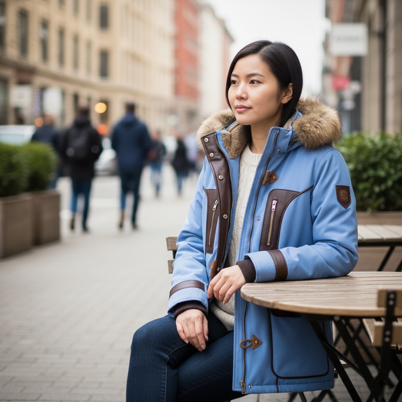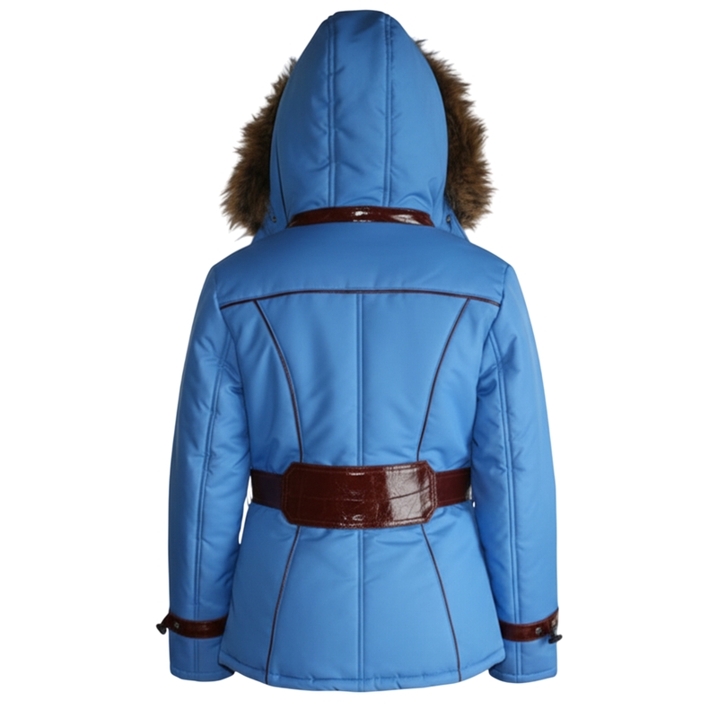 - Detachable hood, through a faux fur lacing (made of polymer fibers, easy to dry)