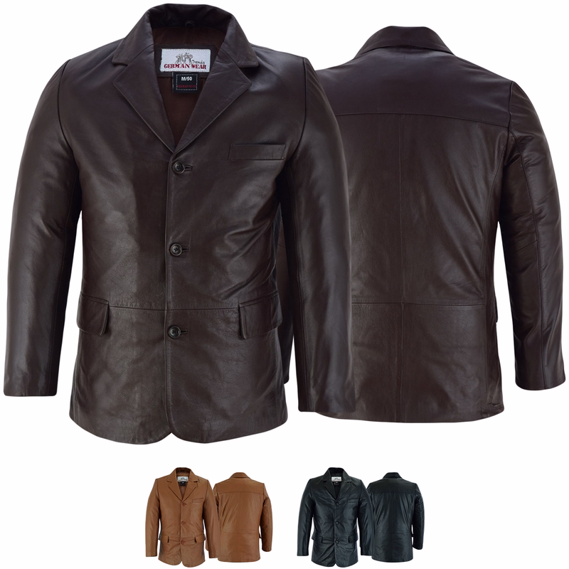 Discover unparalleled style with Men's Leather Blazer Trend 510J, a premium product designed for discerning gentlemen. Crafted from the finest lamb nappa leather, the custom-made blazer offers exceptional softness &high-wearing comfort. Available in dark brown, black, &caramel, the leather jacket features a button-up front, belly-height pockets on each side, a small chest pocket, an inside chest pocket for comfort