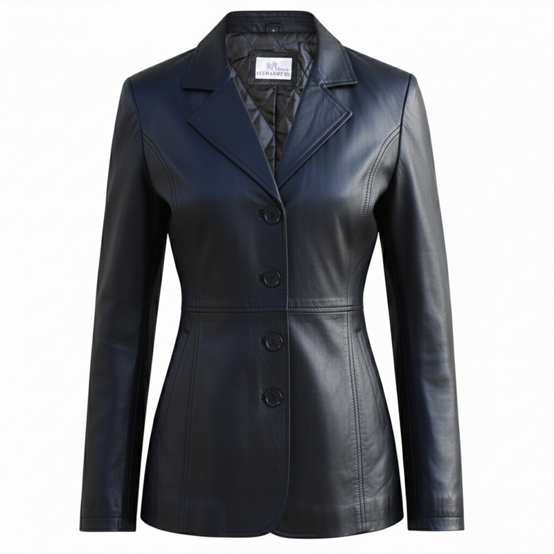 Erheben Sie Ihre Garderobe mit unserem Damen-Lamm-Nappa-Ledermantel, einem zeitlosen Stück, das Stil und Raffinesse perfekt vereint. Dieser trendige Midilange-Mantel verfügt über einen klassischen Reverskragen, lange Ärmel und eine Knopfleiste für einen eleganten Look. Gefertigt aus 100% echtem Lamm-Nappa-Leder, bietet er unvergleichliche Weichheit und Haltbarkeit, während das weiche Polyesterfutter maximalen Komfort gewährleistet. Mit Seitentaschen und einer Innentasche ist er sowohl praktisch als auch modisch und somit eine vielseitige Ergänzung Ihrer Sammlung. Kaufen Sie diesen hochwertigen Mantel online und erleben Sie den Luxus echten Leders. Ideal für jeden Anlass spiegelt dieser schwarze Leder-Mantel das Beste der deutschen Mode mit seinem eleganten Design und hochwertiger Verarbeitung wider. Verpassen Sie nicht dieses essentielle Stück, das moderne Trends mit klassischen Elementen kombiniert – perfekt, um Ihren Stil in dieser Saison aufzufrischen.