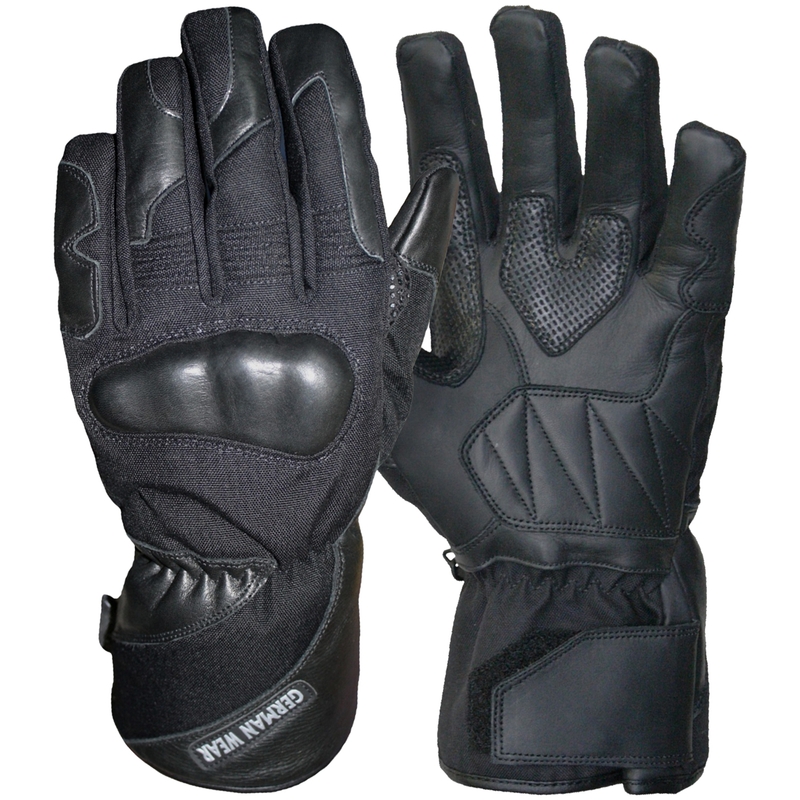 Motorrad-Handschuhe aus Leder und Textil, Farbe: Schwarz