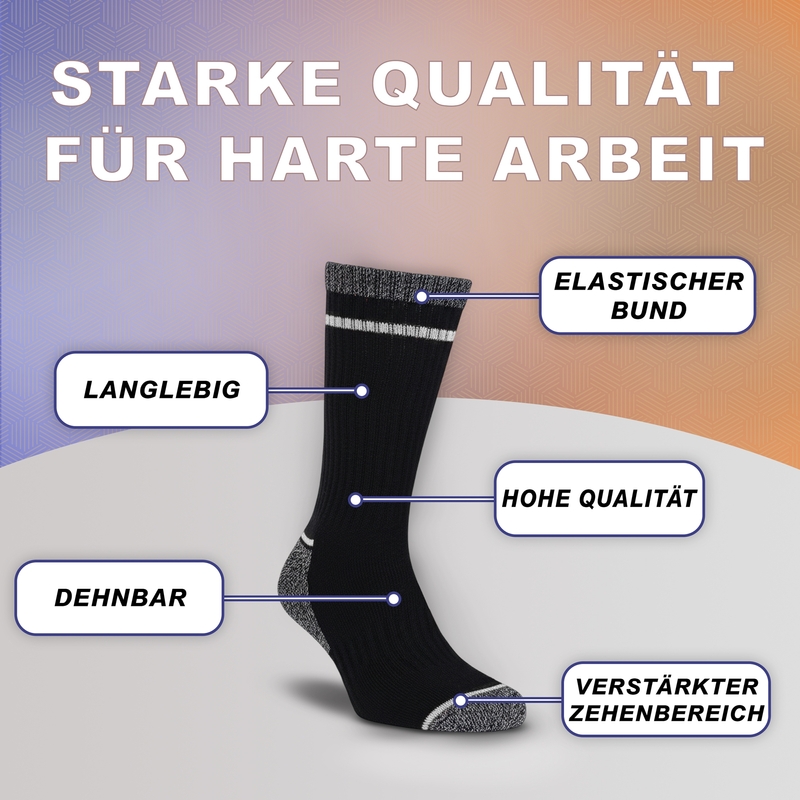 - Ob im Handwerk, Lager, Bau, Garten oder in der Freizeit – diese Socken sind für jede Herausforderung gemacht.