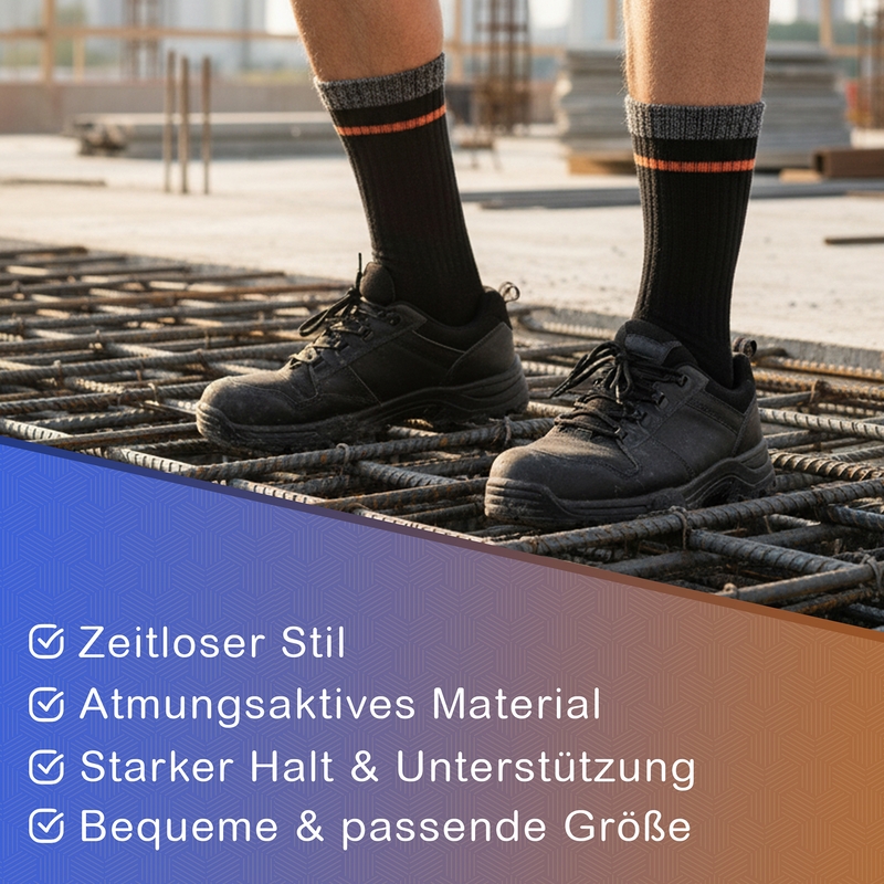 Mit diesen Arbeitssocken bist du bestens ausgerüstet – robust, bequem und atmungsaktiv für jeden Arbeitstag.