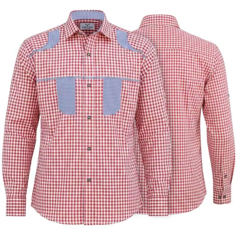 Trachtenhemd für trachten lederhosen freizeit Hemd rot-blau-kariert GW1242 Red