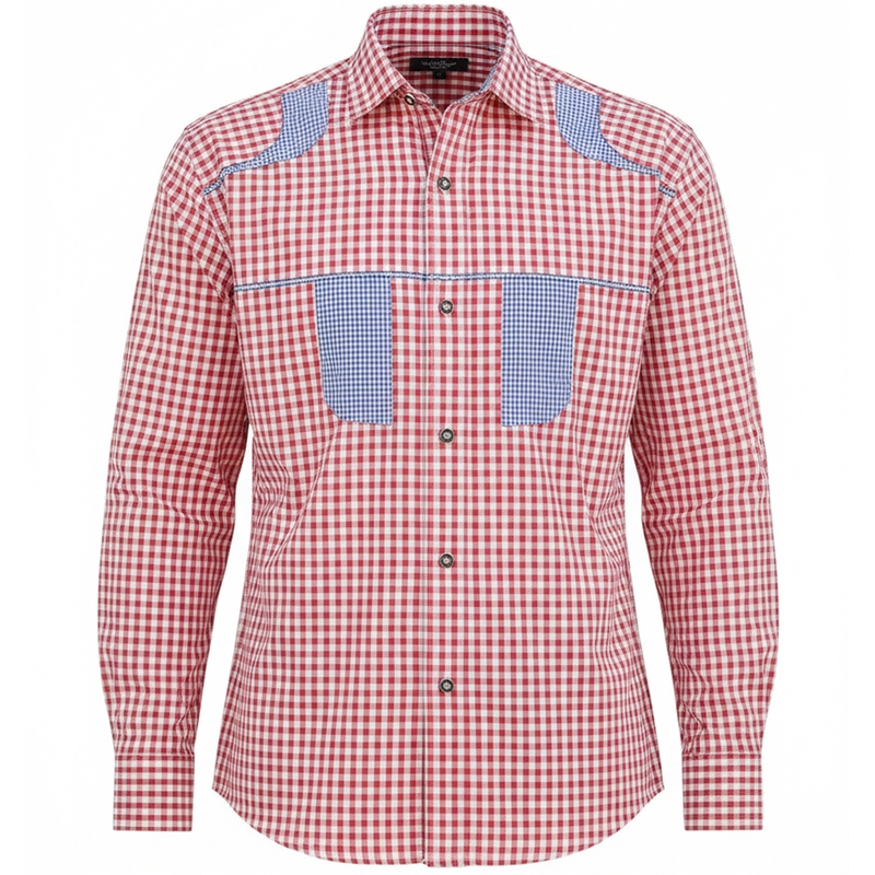 Bayerisches Trachtenhemd Langarm, Rot/Kariert