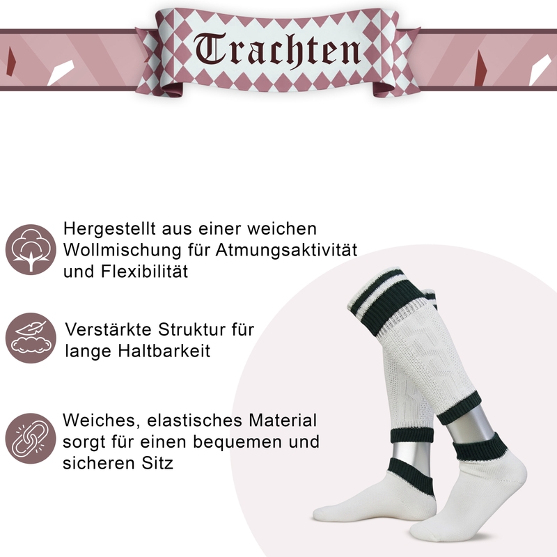Beschreibung und technische detials von 2-teilig Loferl Trachtensocken Zopf natur/grün