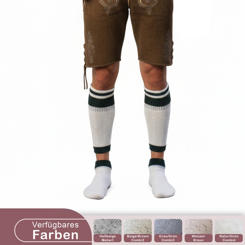 2-teilig Loferl Trachtensocken Trachtenstrümpfe Wadenwärmer Merino natur/grün ANG255 natur/grün Combi4