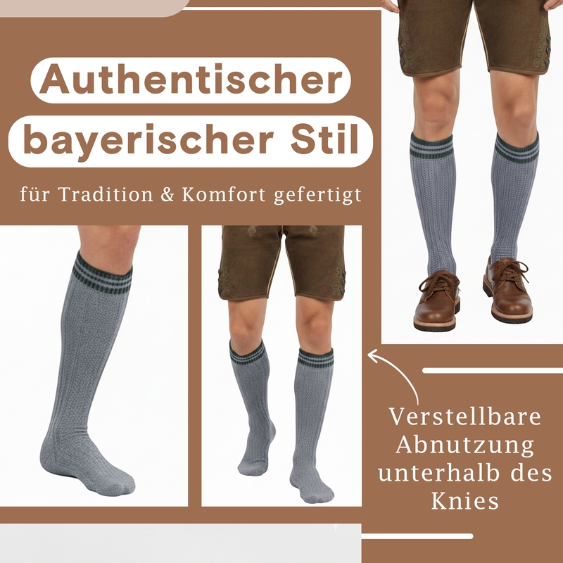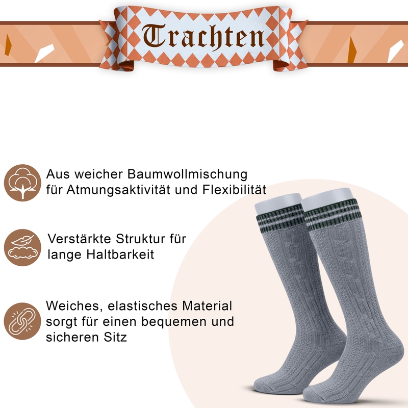 Beschreibung und technische detials von Lange Trachtensocken Strümpfe Grau/Grün