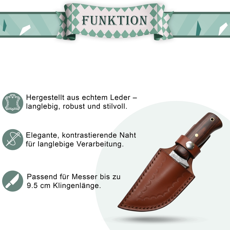 - Die Messerscheide lässt sich dank der Laschenform ganz einfach an einem Gürtel befestigen