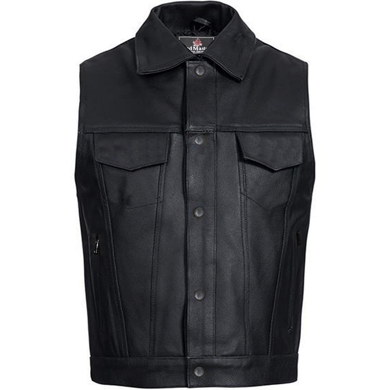 Motorrad Lederweste/Lederhemd aus Kalbsleder, schwarz, Spaltleder