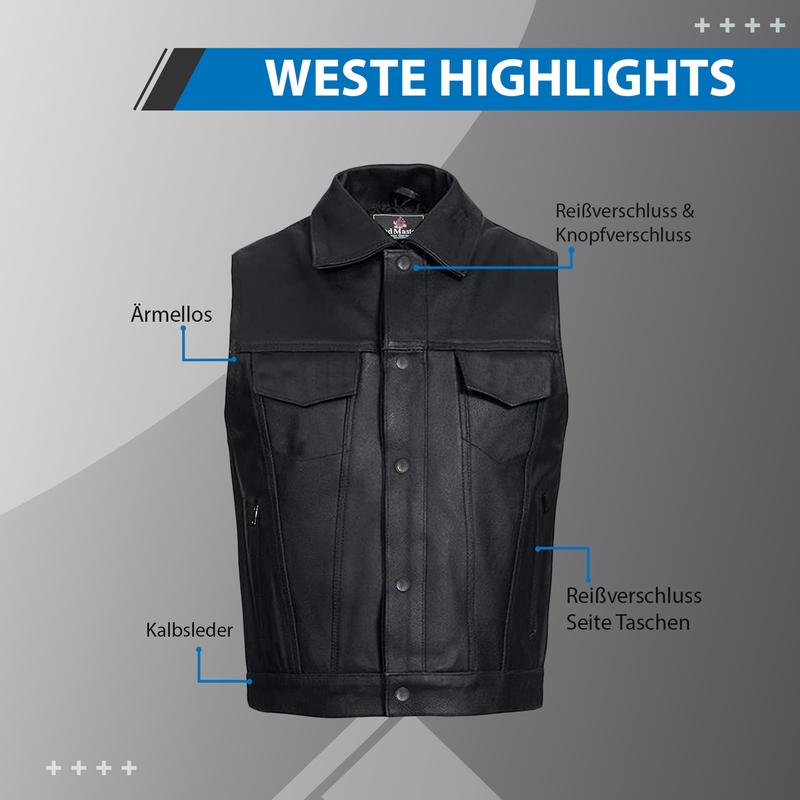 Beschreibung und technische detials von Lederweste Lederkutte Karabiner Bikerweste geflochten nach Maß