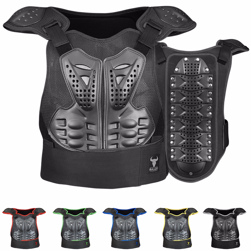Bleiben Sie sicher, komfortabel und bestens geschützt mit der BULLDT Protective Motorcycle Jacket, entwickelt für Motorradfahren, Motocross, BMX, Skateboarding und vieles mehr. Diese leichte Ganzkörperrüstung verfügt über 8 atmungsaktive Protektoren an Brust, Schultern, Ellbogen und Unterarmen, während der separate Rückenprotektor mit 8 Schuppenplatten und Beckengurt für erweiterten Wirbelsäulenschutz sorgt. Mit Frontreißverschluss, verstellbaren Riemen und elastischen Bündchen bietet die Jacke einen sicheren, ergonomischen Sitz, der sich natürlich Ihren Bewegungen anpasst. Die offene Konstruktion unter den Armen fördert die Luftzirkulation, während das atmungsaktive Mesh-Gewebe für Kühlung bei intensiven Fahrten und Sportaktivitäten sorgt.