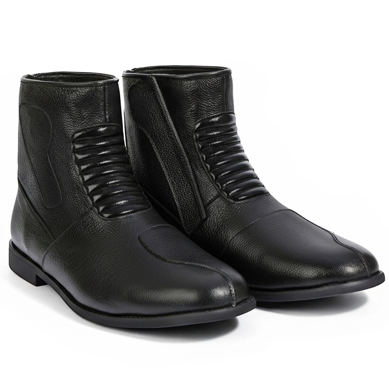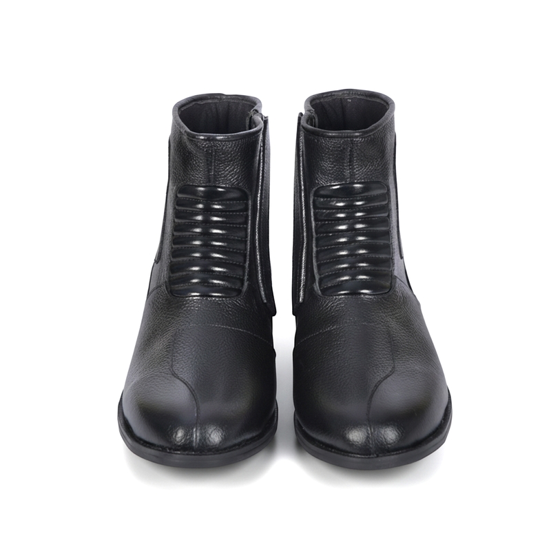 Unsere Motorradstiefel aus hochwertigem Kalbsleder bieten Ihnen den besten Komfort und Schutz sowohl beim Motorradfahren als auch im Alltag. Die schwarze Farbe passt perfekt zu unseren Motorradjacken und Kombisätzen, sodass Sie stets stilvoll unterwegs sind. Dank des weichen Rindsleders und der flexiblen Elasthan-Stretch-Technologie im Rist bieten die Stiefel außergewöhnlichen Komfort. Sie sind wasserabweisend und verfügen über Verstärkungen an der Ferse und im Zehenbereich für zusätzlichen Schutz. Mit einer hochwertigen Gummisohle und einem praktischen Reisverschluss sind diese Schlüpfstiefel sowohl funktional als auch modisch – ideal zu Jeans oder als Berufsbekleidung. Jetzt online kaufen und Komfort mit Stil genießen!