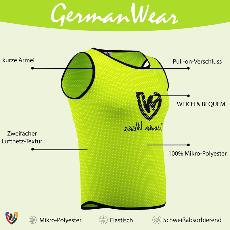 Beschreibung und technische detials von 12x German Wear Fußball Leibchen Trainingsleibchen