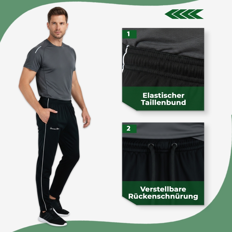 Die German Wear® STRIKER Trainingshose ist die perfekte Wahl für sportlich aktive Männer, die Komfort, Funktionalität und Stil in einer Hose vereint wissen möchten – egal ob auf dem Platz, im Studio oder in der Freizeit.