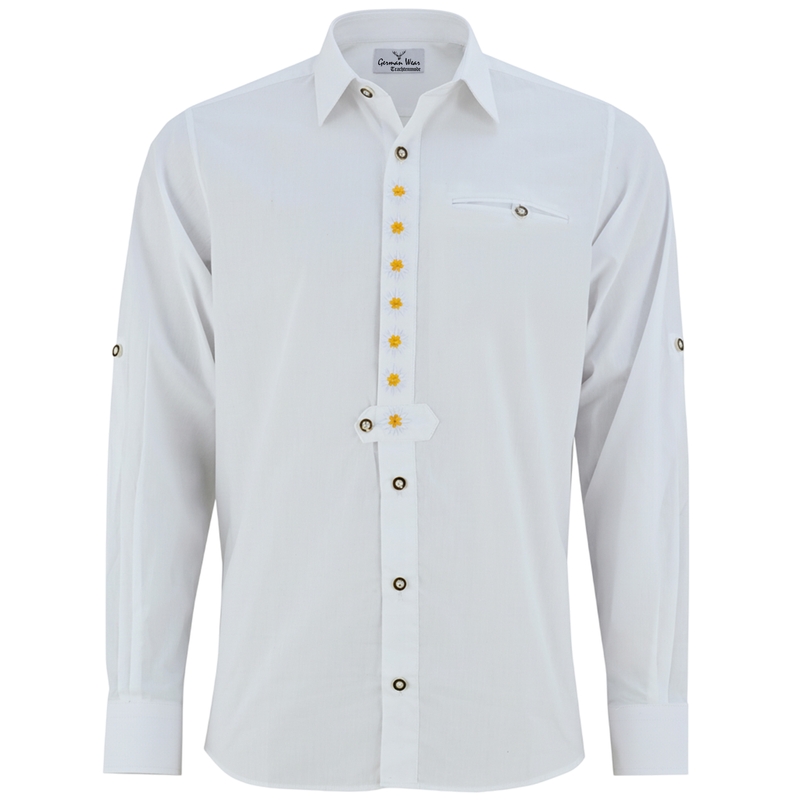 Beschreibung und technische detials von Trachtenhemd Hemd als Trachtenmode Weiß Edelweiß Bestickt