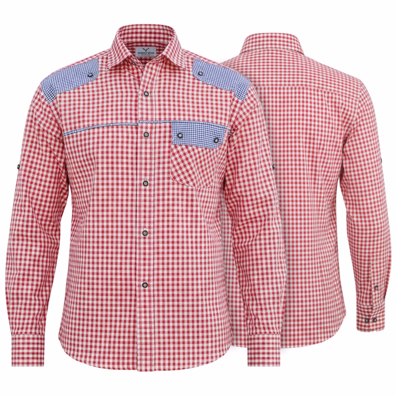 German Wear, Trachtenhemd für Lederhosen mit Verzierung rot/kariert