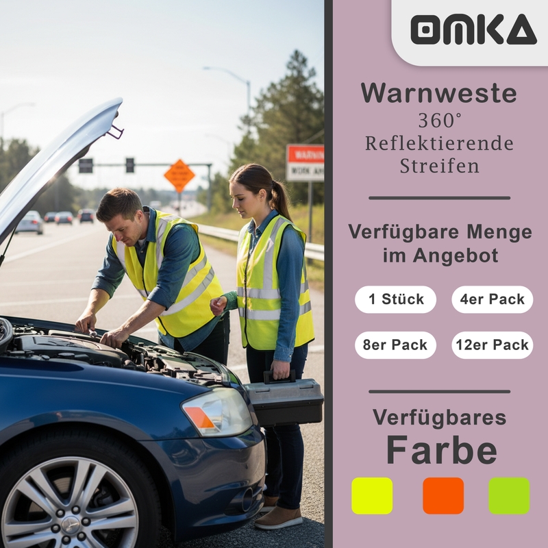 Entdecken Sie erstklassige Sicherheit mit den hochwertigen Omka Sicherheitswesten mit hoher Sichtbarkeit. Unsere ärmellosen Westen mit V-Ausschnitt sind so konzipiert, dass sie maximale Sichtbarkeit und Komfort bieten und mit 5 cm breiten Reflexstreifen für mehr Sicherheit ausgestattet sind. Diese Westen sind in drei leuchtenden Neonfarben erhältlich und eignen sich perfekt für Notfälle und den Einsatz im Auto, damit Sie in jeder Situation gesehen werden. Unsere reflektierende Sicherheitskleidung ist nicht nur funktional, sondern auch elegant und verbindet hochwertige Qualität mit praktischem Design. Egal, ob Sie eine zuverlässige Pannenweste oder eine gut sichtbare Sicherheitsweste für das Auto benötigen, Omka bietet Ihnen ein außergewöhnliches Preis-Leistungs-Verhältnis und einen tollen Stil. Kaufen Sie jetzt online und statten Sie sich mit den besten reflektierenden Sicherheitswesten aus.